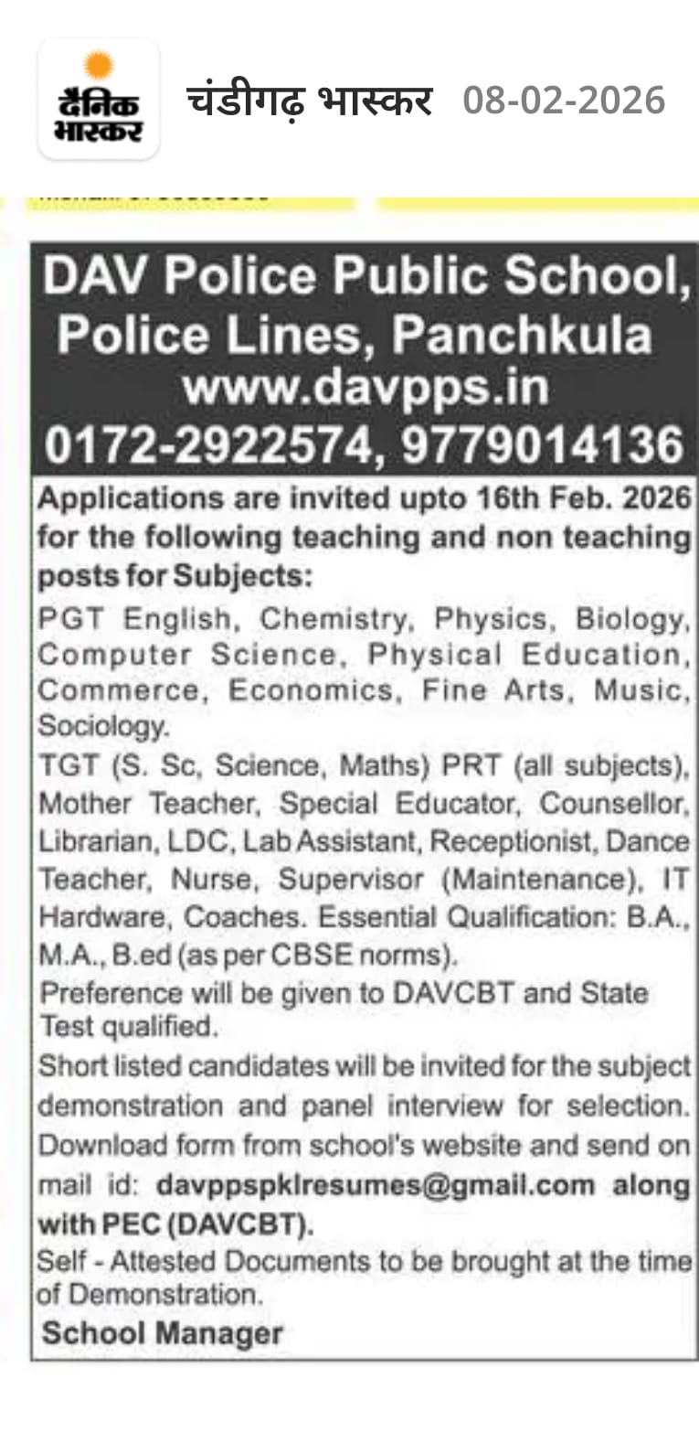 DAV Police Public School Police lines, Panchkula,Haryana - 134116 E-Mail: davpps.pkl@gmail.com Phone: +91-8699014136 , 9988457115 Website: davpps.in Follow us on:
